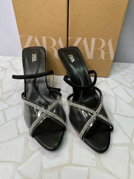 کفش مجلسی پاشنه بلند زارا زنانه مشکی و کرم ZARA