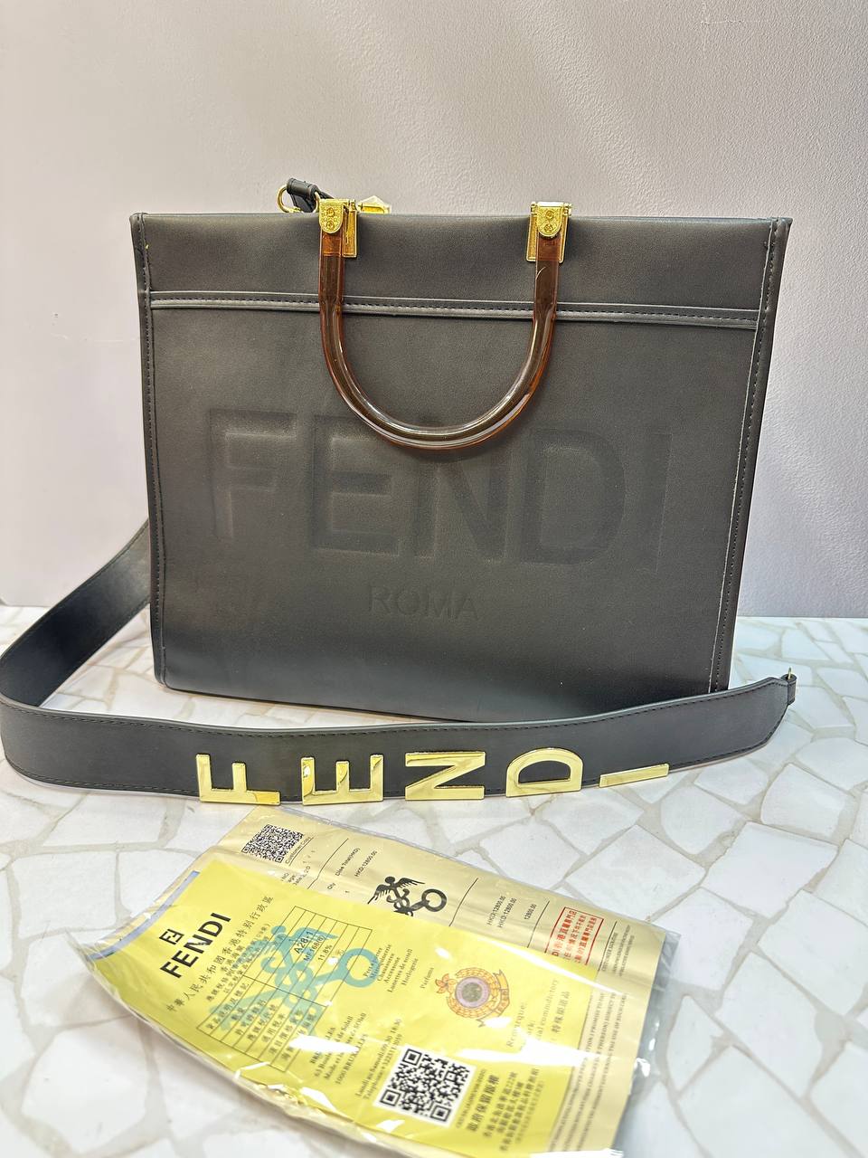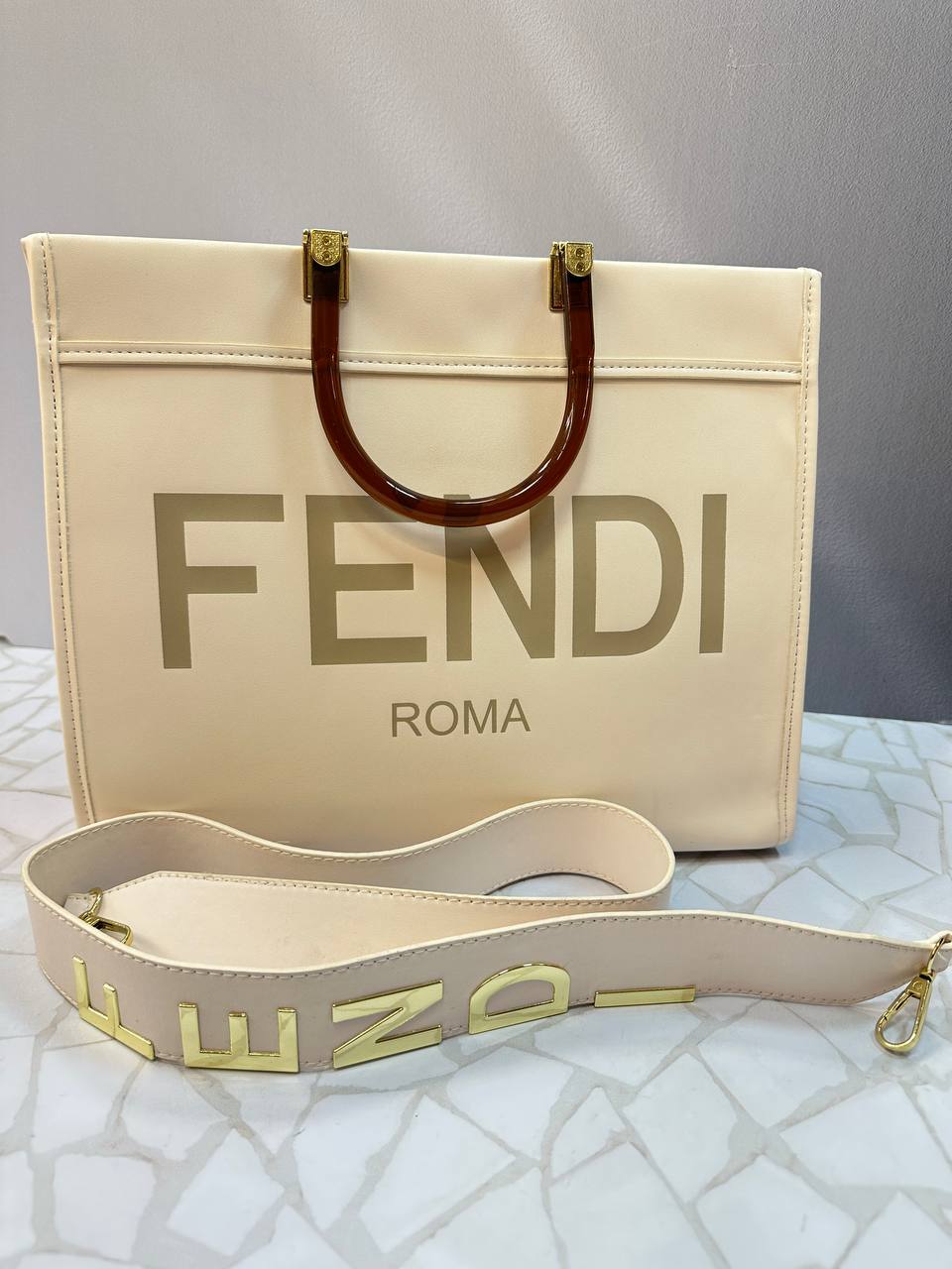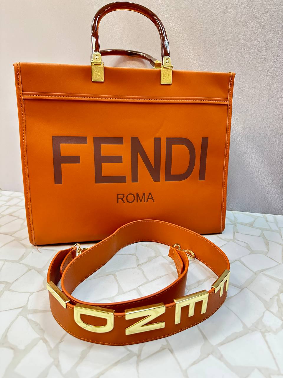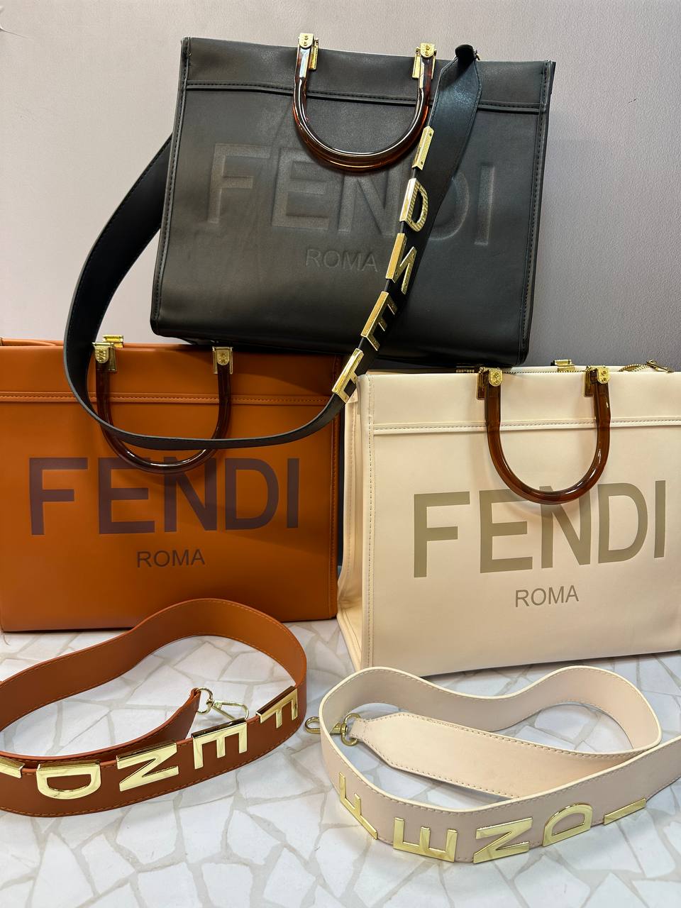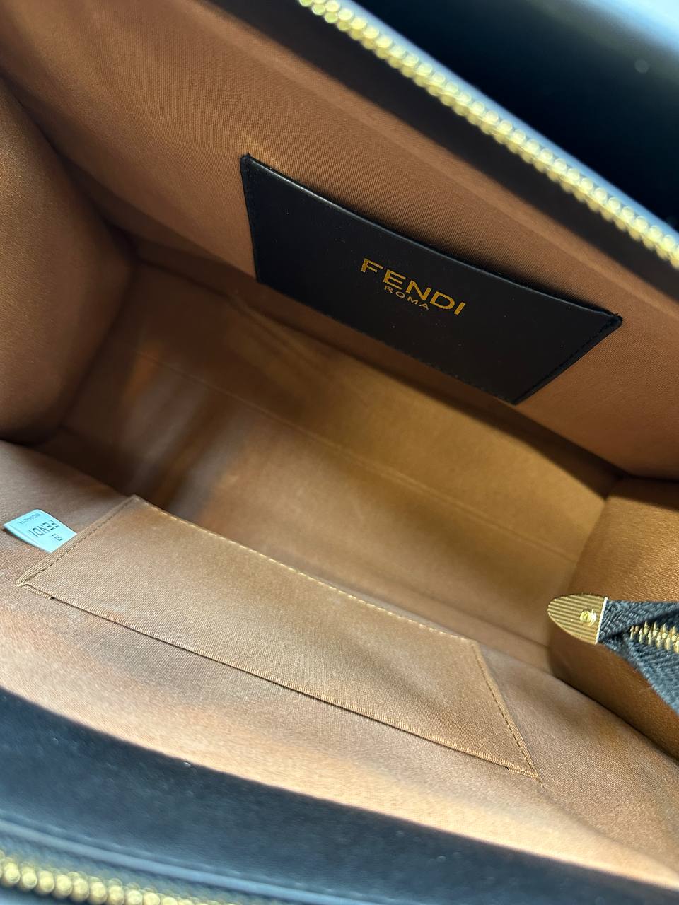 برند FENDI به ظرافت و اصالت در طراحی شهرت دارد. لوگوی برجسته “FENDI ROMA” روی بدنه و حروف طلایی روی بند، نشاندهنده اصالت و توجه به جزئیات است.