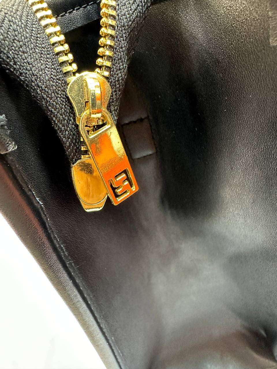 کیف دستی فندی زنانه دارای جای مخصوص کارت، فضای کافی برای تلفن همراه، کیف پول و سایر وسایل ضروری است. بسته شدن آن با زیپ از قسمت بالا، امنیت محتویات داخل را تضمین میکند.