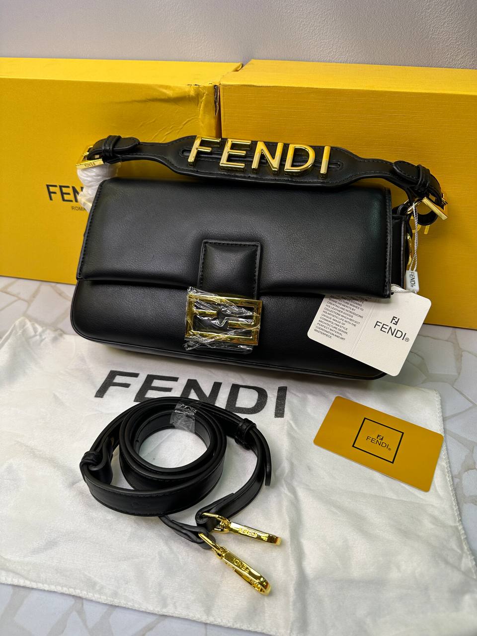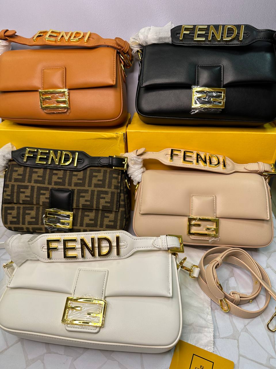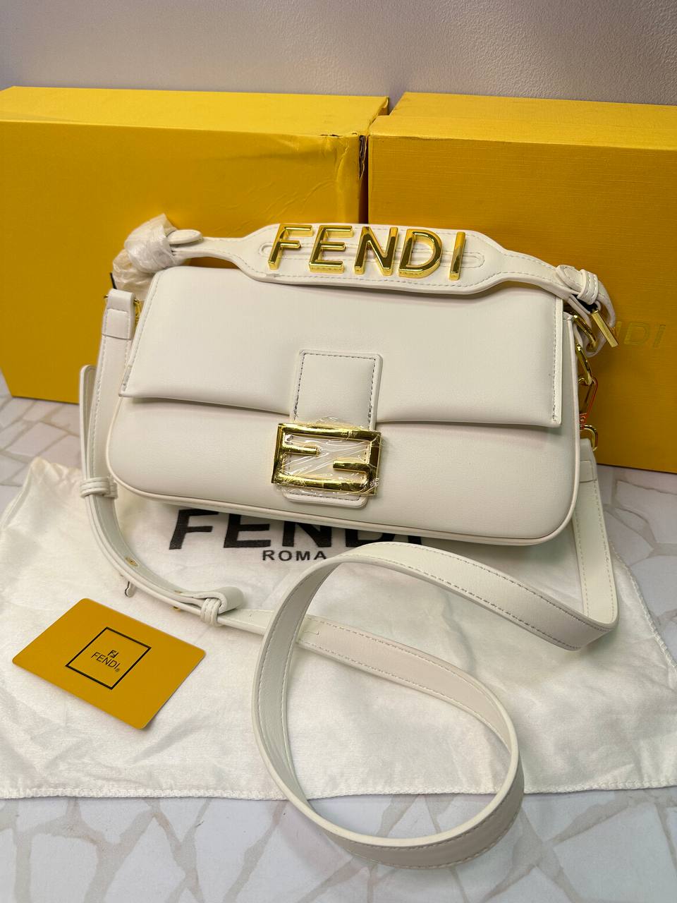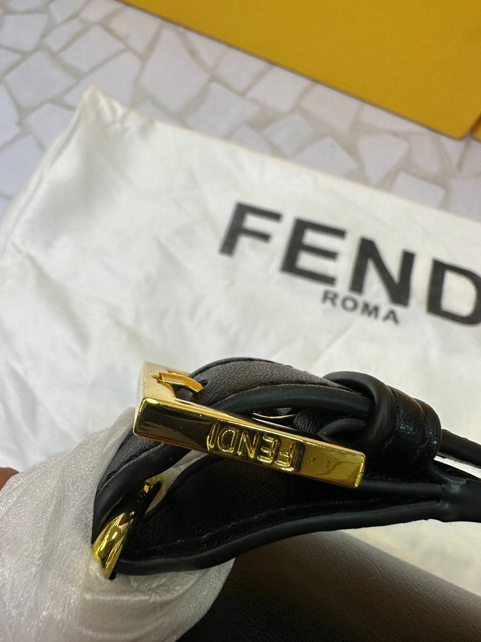 این کیف قابلیت استفاده به دو صورت دستی و دوشی را دارد. بند کوتاه آن بهصورت ثابت روی کیف نصب شده و با حروف طلایی برجسته FENDI تزئین شده است که جلوهای چشمگیر به آن میبخشد.