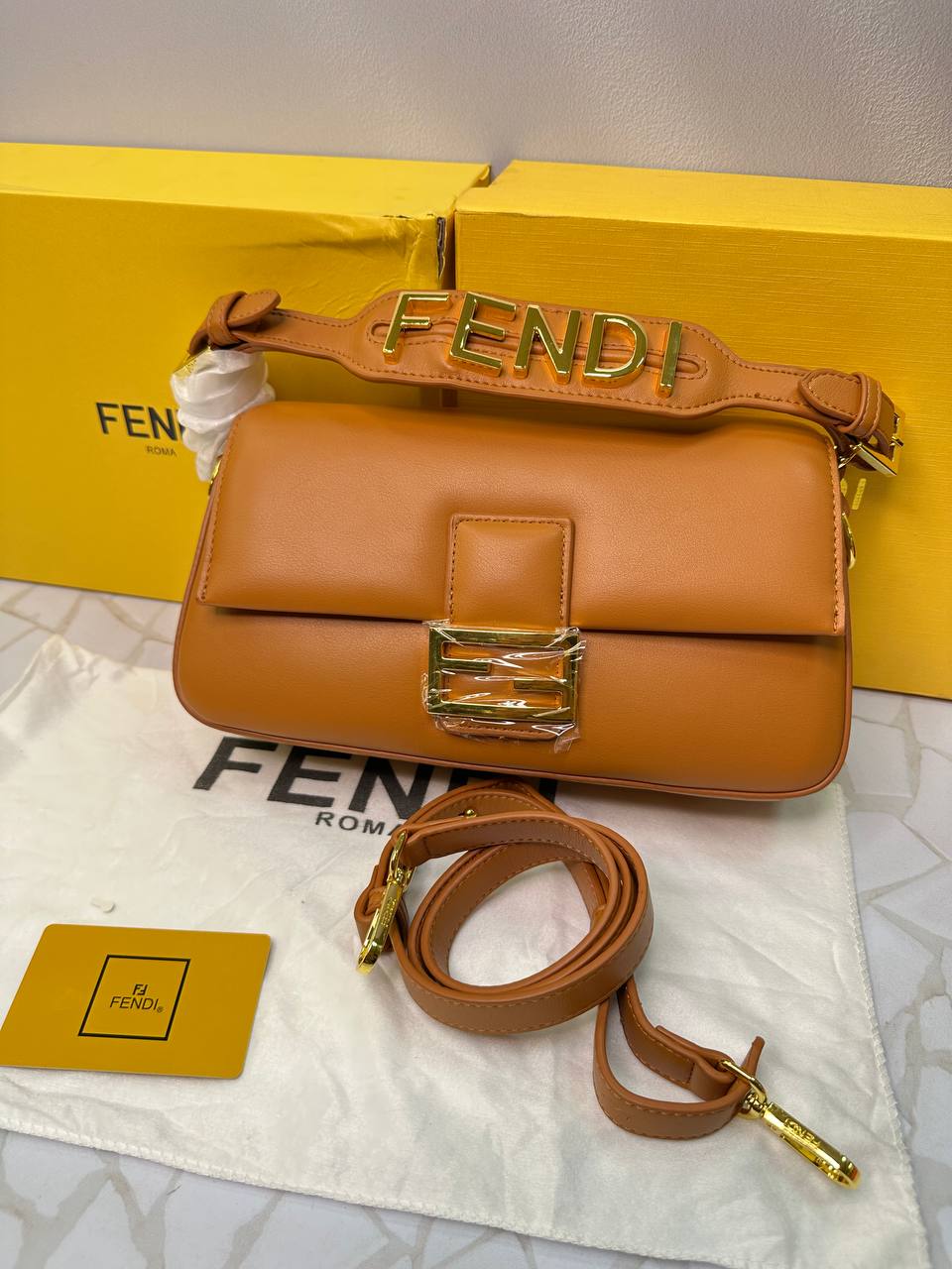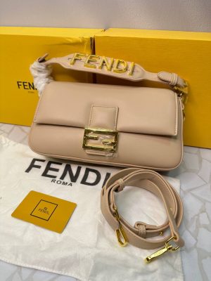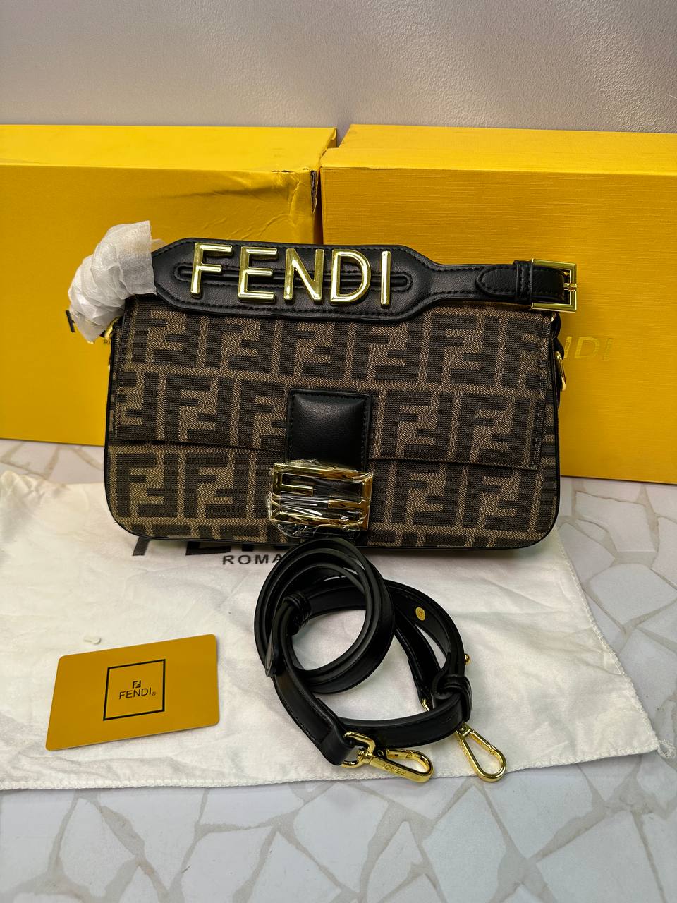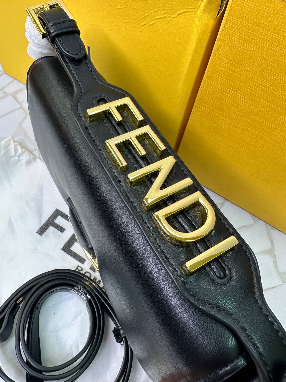 این کیف قابلیت استفاده به دو صورت دستی و دوشی را دارد. بند کوتاه آن بهصورت ثابت روی کیف نصب شده و با حروف طلایی برجسته FENDI تزئین شده است که جلوهای چشمگیر به آن میبخشد.