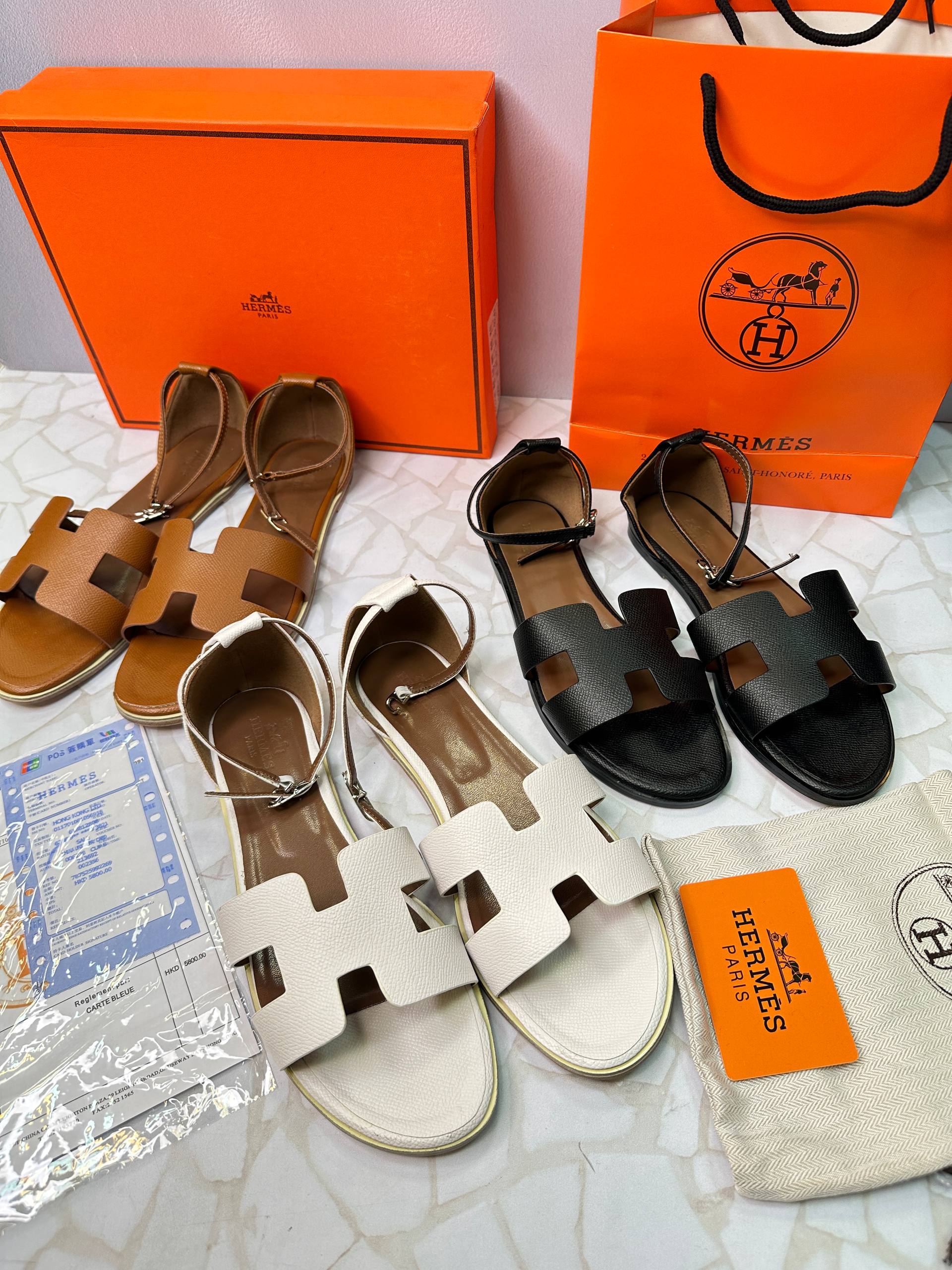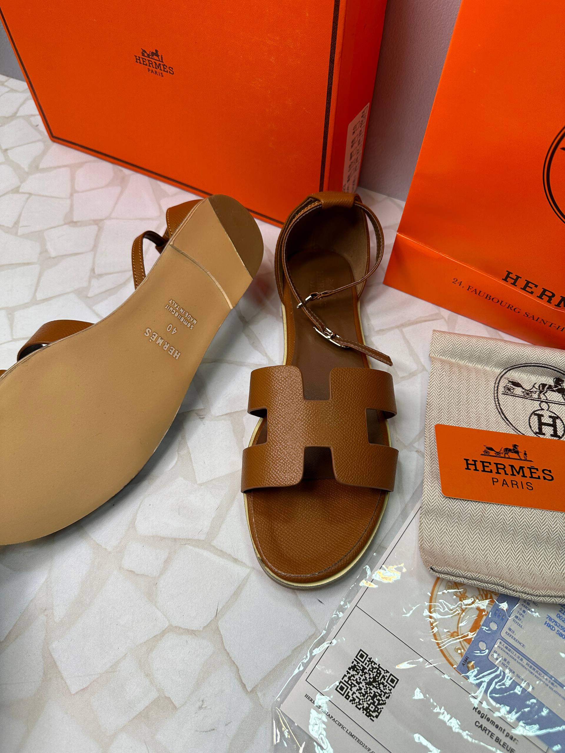 صندل هرمس Hermes بندی زنانه چرمی تخت