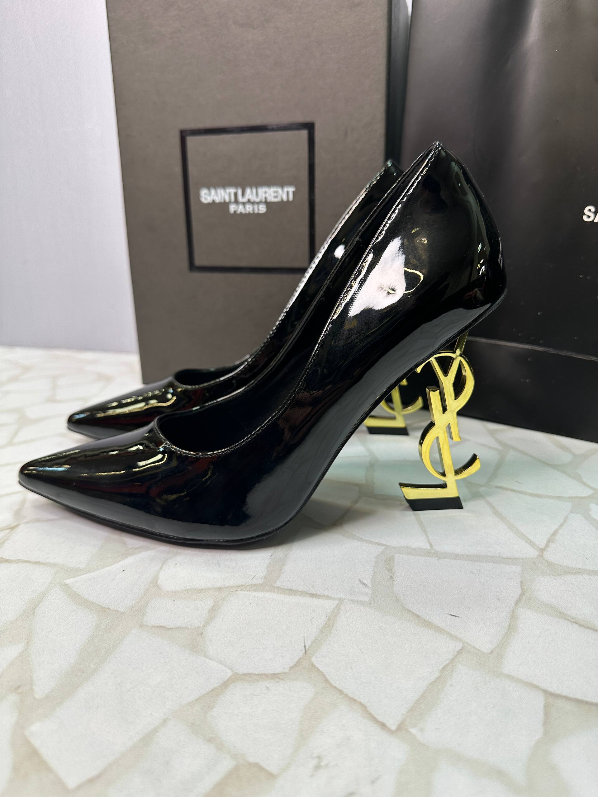 کفش پاشنه بلند ایو سن لورن نمادی از ظرافت، جسارت و طراحی لوکس فرانسوی است. این مدل با رویه ورنی براق و پاشنه فلزی لوگودار، جلوهای کاملاً خاص و چشمگیر به استایل شما میبخشد و گزینهای ایدهآل برای مراسم رسمی، مهمانیها و استایلهای مجلسی محسوب میشود.