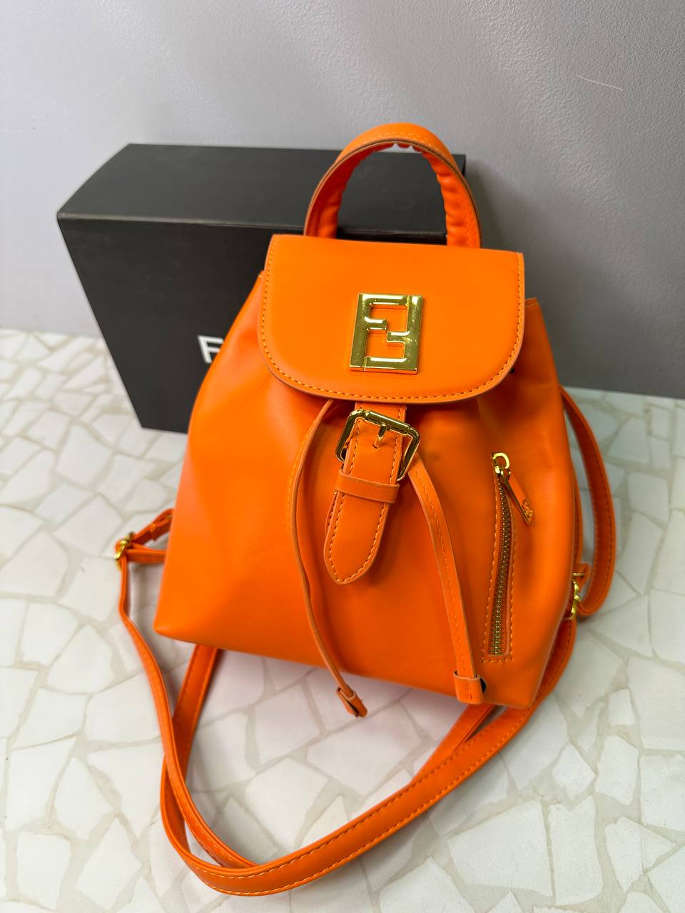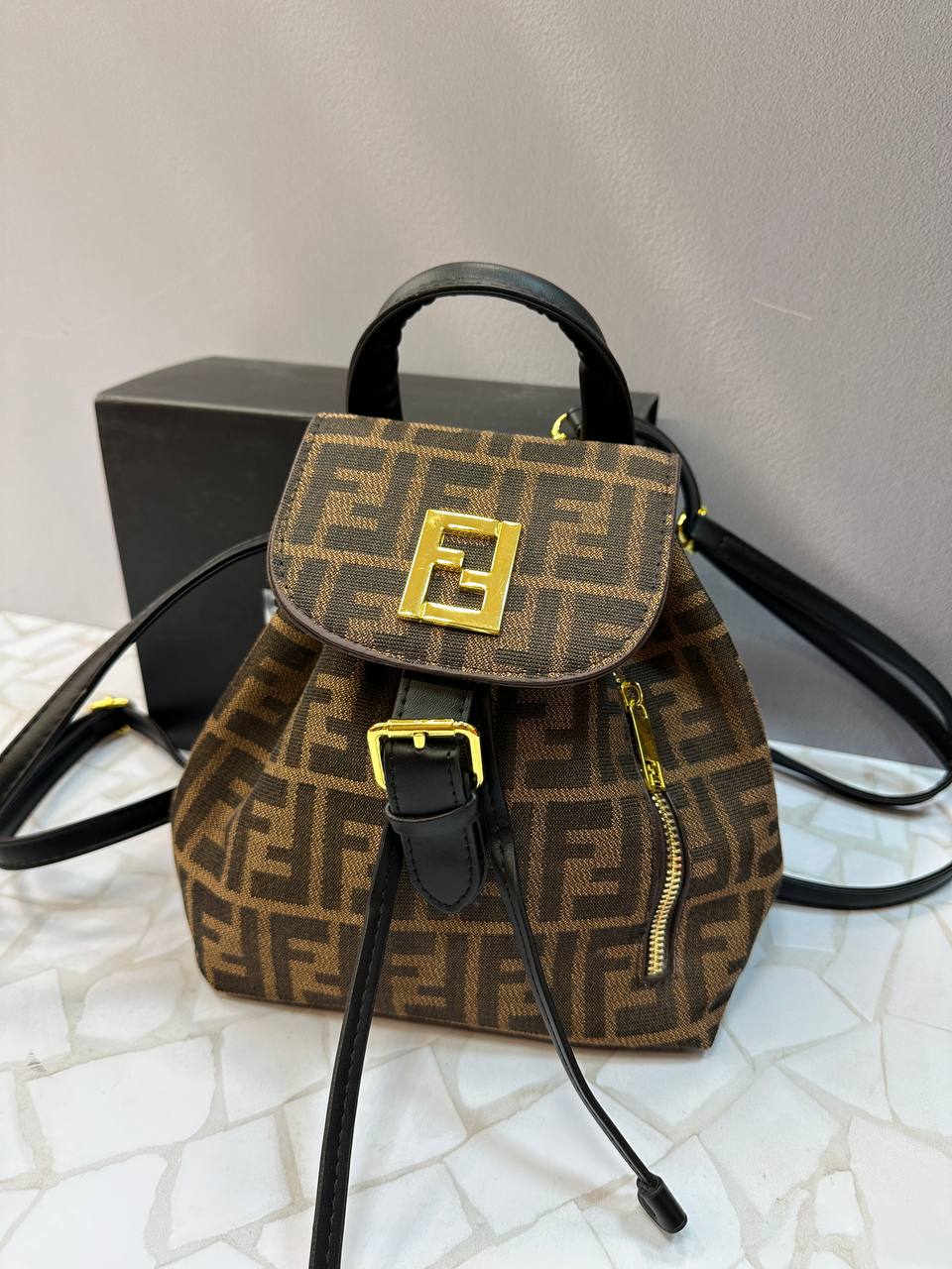 کوله پشتی فندی زنانه با پک و بستهبندی اصلی برند فندی ارائه میشود تا تجربهی خریدی لوکس و حرفهای را برای شما به ارمغان آورد. جزئیات طلایی فلزی، دوخت دقیق و لوگوی شاخص برند، اصالت این محصول را بهخوبی نشان میدهد.