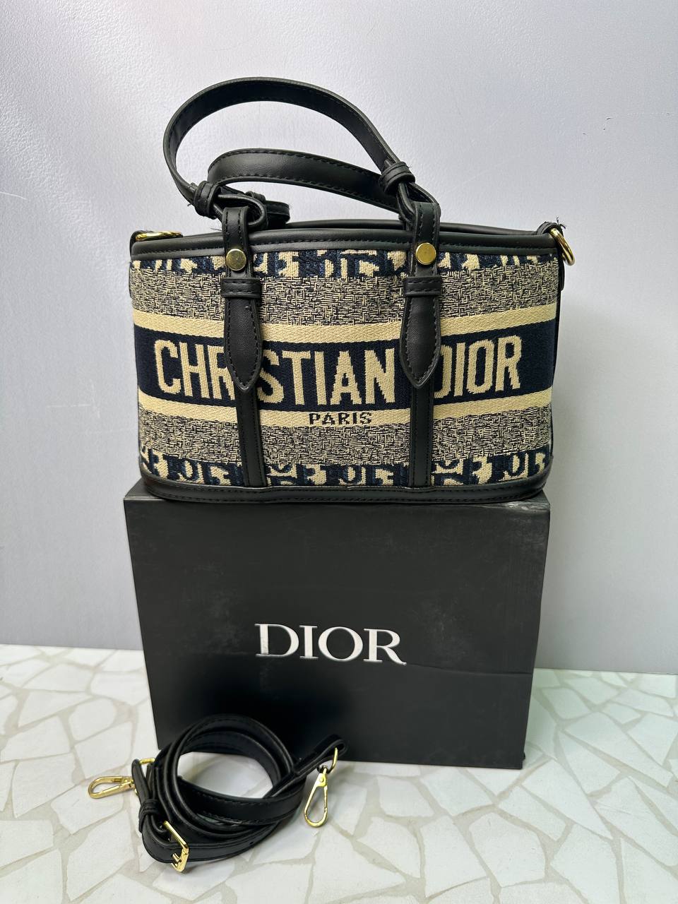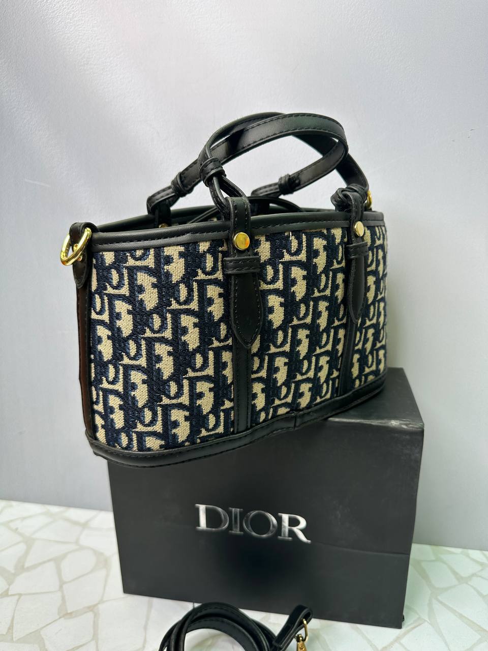 این مدل در دو نسخه منوگرام ریز و منوگرام درشت آماده شده است. طرح ریز حالتی ظریفتر، مرتبتر و کلاسیکتر دارد، درحالیکه طرح درشت، استایلی جسورانهتر، چشمگیرتر و مناسب افرادی با سلیقه مدرن محسوب میشود. هر دو طرح با پارچه مشکی ـ کرم و لوگوی تکرارشونده Dior ساخته شدهاند و ظاهر کاملاً برنددار و لوکسی را ایجاد میکنند.
