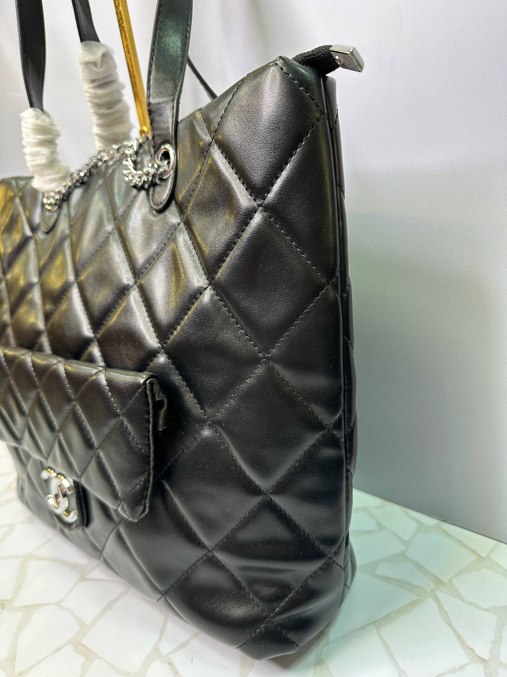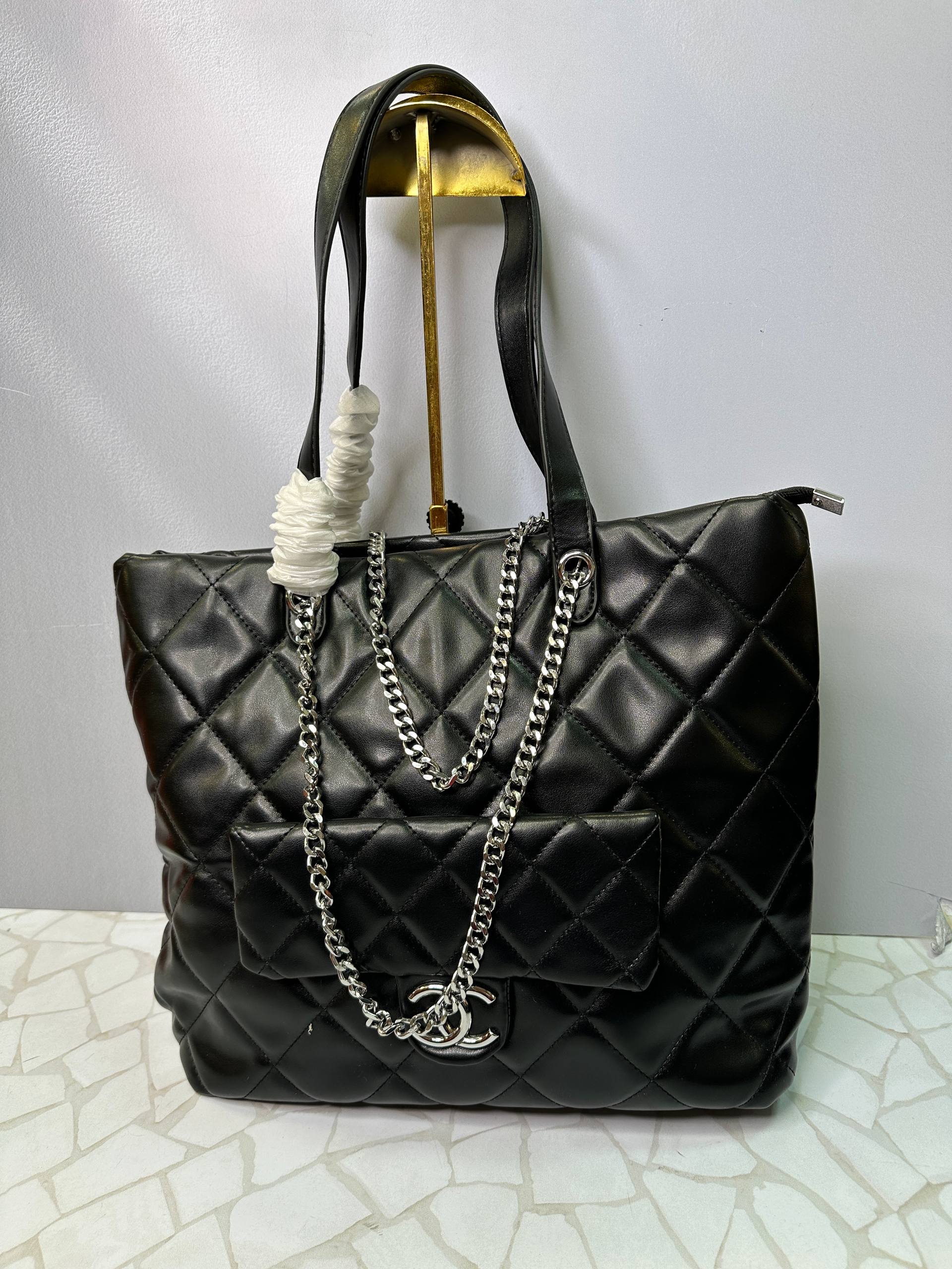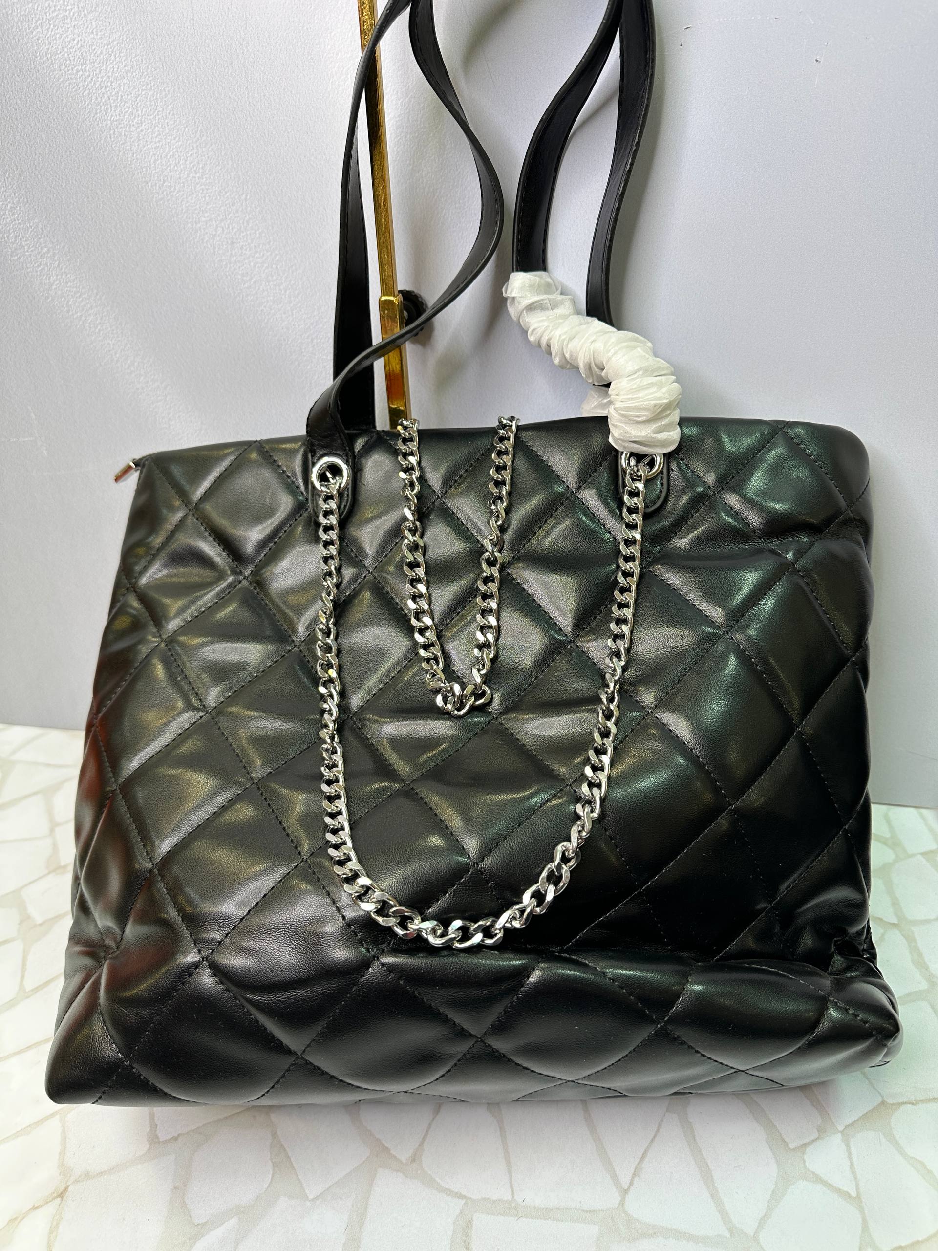 معرفی کلی کیف دستی زنانه مشکی سایز بزرگ شنل با بند زنجیری کروم