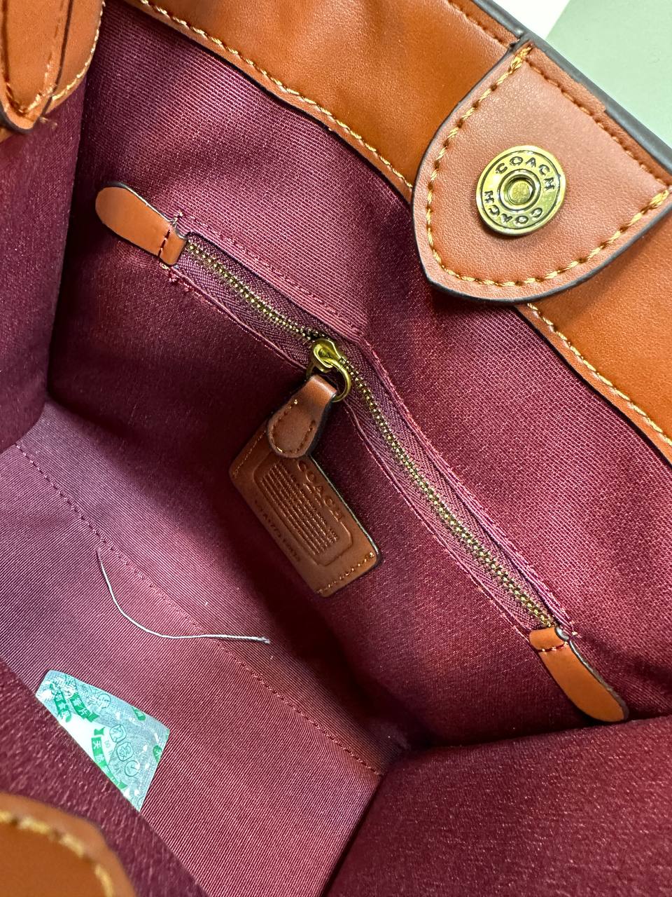 داخل کیف با پارچهی جیر نرم و باکیفیت پوشیده شده که علاوه بر محافظت از لوازم داخل، حس لوکس و دلپذیری در هنگام استفاده ایجاد میکند. این انتخاب متریال داخلی، نشاندهندهی دقت طراحان کوچ در رعایت جزئیات حتی در بخشهای داخلی محصول است.
