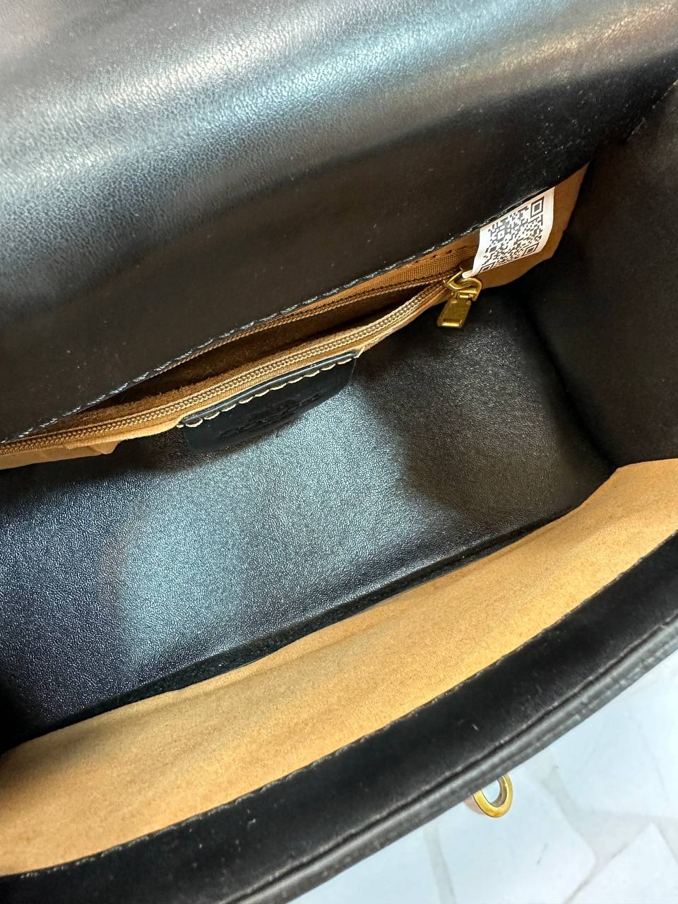 داخل کیف ترکیبی از پارچه مخملی و چرم با کیفیت است که هم دوام بالایی دارد و هم حس لوکس بودن را به کاربر منتقل میکند.