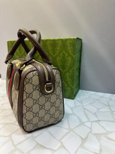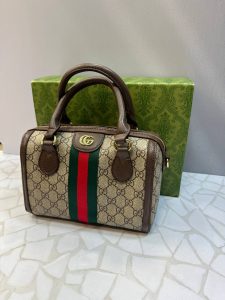 کیف دستی و دوشی زنانه گوچی با طراحی صندوقی کلاسیک و نوار سبز–قرمز نمادین، یکی از محبوب‌ترین مدل‌های این برند لوکس است. این کیف با سایز کاربردی و طراحی شیک، انتخابی مناسب برای خانم‌هایی است که به دنبال ترکیب اصالت و کاربرد هستند.