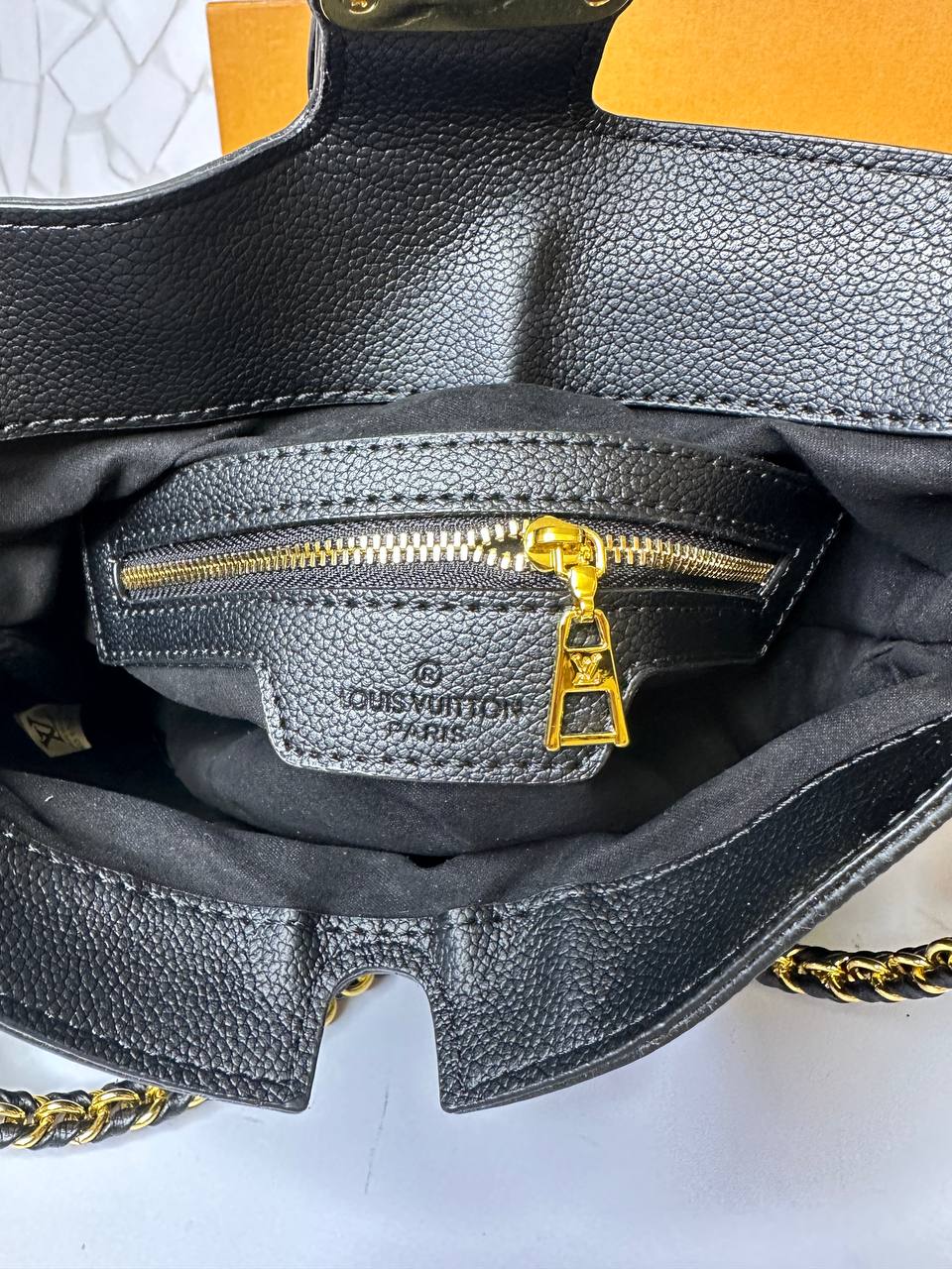 فضای داخلی کیف با پارچه بسیار باکیفیت آسترکشی شده که لوگوی LV بهصورت ظریف بر روی آن چاپ شده است. این لایه داخلی علاوه بر زیبایی ظاهری، دوام بالایی در برابر رطوبت و سایش دارد و از وسایل شخصی بهخوبی محافظت میکند. وجود یک جیب زیپدار داخلی، امکان تفکیک وسایل حساس مانند کارتها، کلیدها و لوازم کوچک را فراهم میکند و نظم بیشتری به فضای داخلی میدهد. این طراحی هوشمندانه باعث میشود کیف علیرغم ابعاد جمعوجور، کارایی بسیار بالایی داشته باشد.