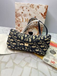 داخل کیف از پارچه مشکی با لوگوی Dior ساخته شده است؛ پارچهای که هم زیبایی دارد و هم دوام بالایی در برابر استفاده روزانه. این آستر کمک میکند محتویات کیف بهخوبی در جای خود قرار بگیرند و سطح داخلی کیف نیز در برابر خطوخش یا آلودگی محافظت شود.