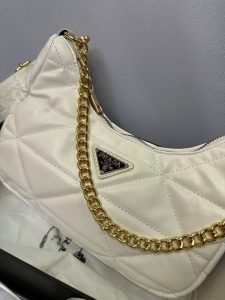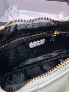 در داخل کیف یک محفظه اصلی جادار همراه با یک جیب کوچک زیپدار طراحی شده است. زیپ طلایی روی کیف نیز با لوگوی برند PRADA تزئین شده تا جزئیات لوکس این مدل را تکمیل کند.