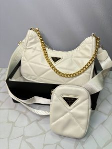 هر کیف دوشی پرادا زنانه با پک و بستهبندی اصلی برند PRADA عرضه میشود تا حس خریدی لوکس و خاص را به شما القا کند. لوگوی فلزی پرادا، زنجیر طلایی و یراقهای ظریف طلایی رنگ، اصالت برند و کیفیت بالای آن را تضمین میکند.
