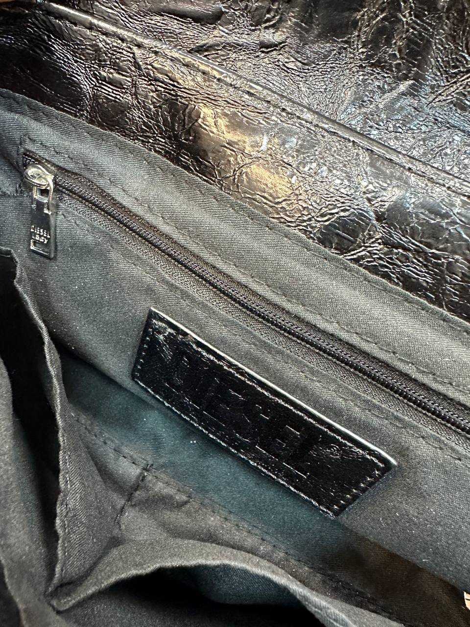 لوگوی فلزی دیزل در قسمت جلو و آستر برنددار داخلی، نشاندهنده اصالت و هویت طراحی است. این جزئیات به جذابیت بصری کیف میافزایند و تجربه کاربری لوکستری ارائه میدهند.
