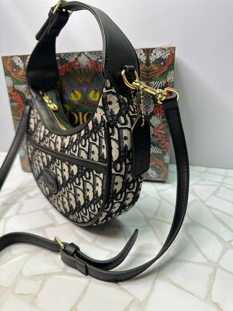 کیف دیور مدل ماه یکی از طراحیهای خاص این برند است که با الهام از فرمی منحنی و ملایم، ظاهری شبیه هلال ماه ایجاد میکند و به همین دلیل نیز در میان طرفداران مد و اکسسوری به نام «کیف مدل ماه» شناخته میشود. این کیف با ترکیب هوشمندانهی پارچه منوگرام مشکی و چرم مصنوعی مشکی، جلوهای متمایز، مینیمال و در عین حال لوکس را ارائه میدهد؛ جلوهای که میتواند به راحتی استایل روزمره یا رسمی شما را تکمیل کرده و نقطه تمرکز جذابی در ظاهر شما ایجاد کند. الگوی پرطرفدار منوگرام دیور که جلوهای کلاسیک و مدرن دارد، در بخشهای بدنه جلو و پشت قرار گرفته و تضاد آن با چرم مشکی اطراف، ظاهری یکدست، خوانا و بسیار چشمنواز پدید آورده است.