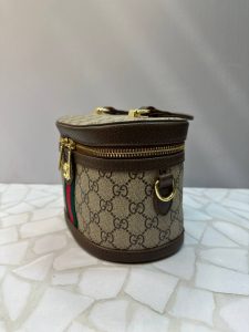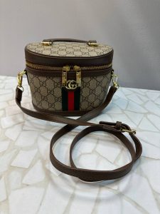 این کیف با طرح منوگرام ریز قهوه‌ای و لوگوی طلایی GG در قسمت قفل، ظاهری بسیار جذاب و خاص به استایل شما می‌بخشد.