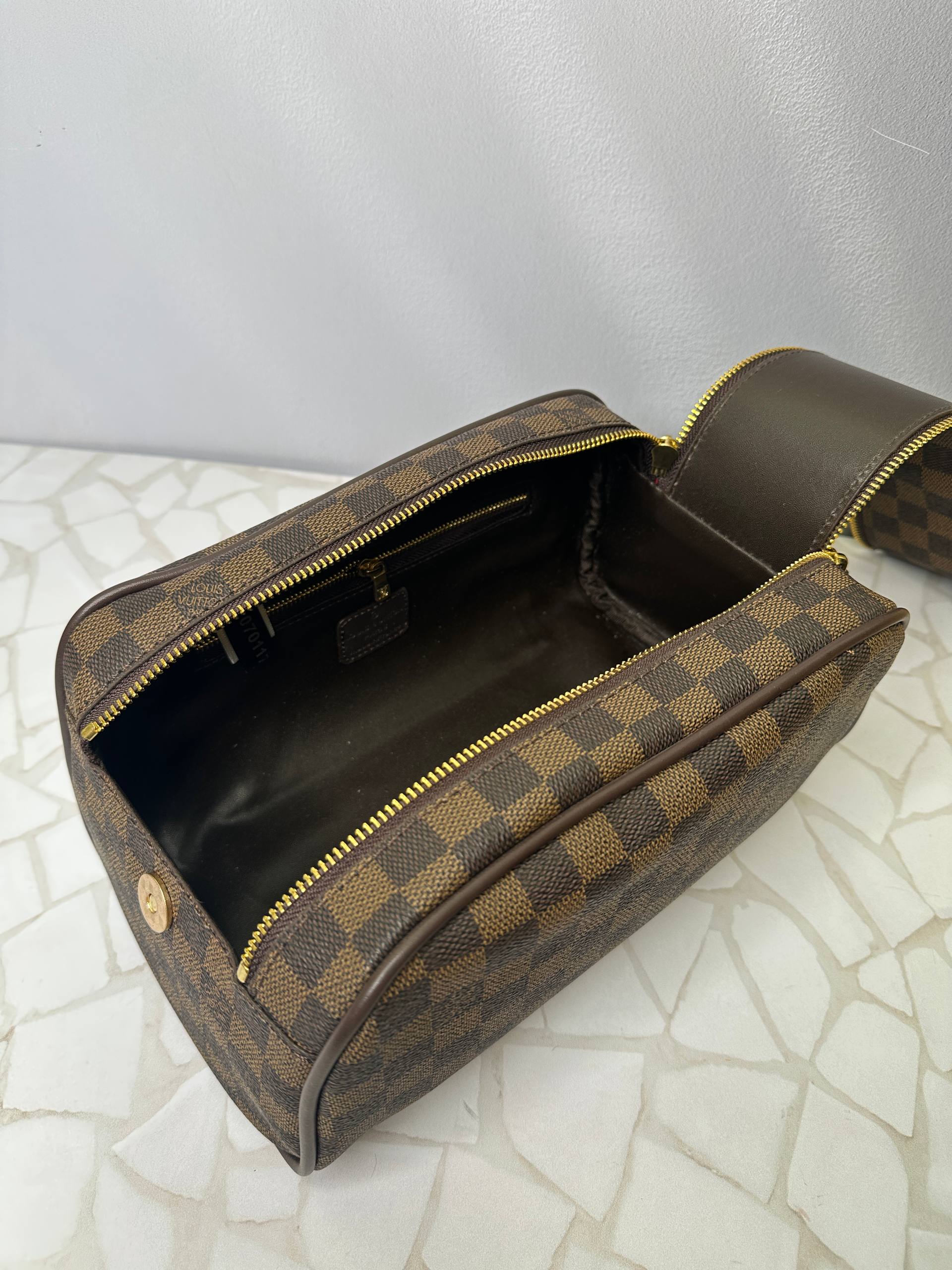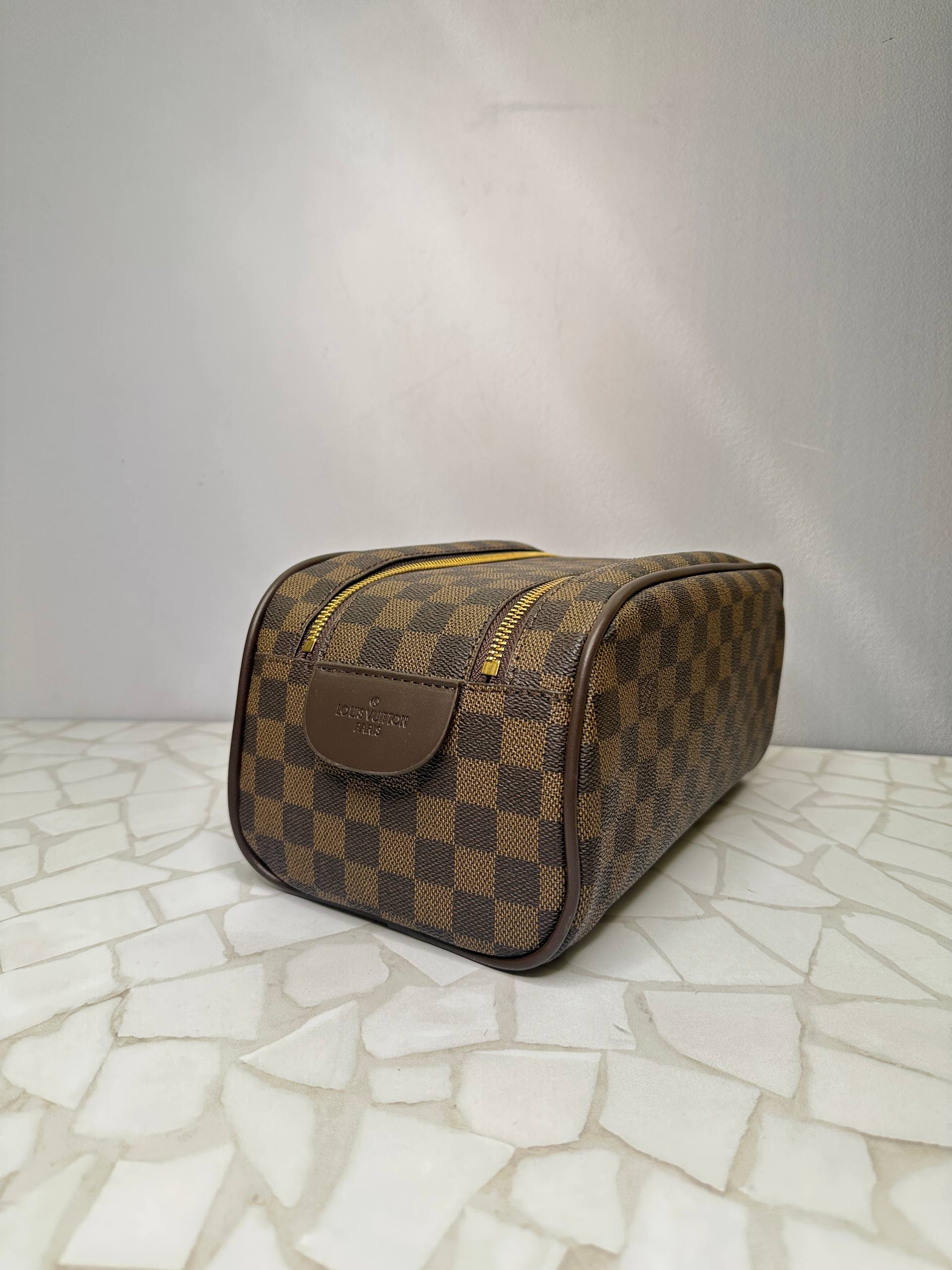 این مدل کیف لوازم آرایشی از برند لویی ویتون بهصورت دو تکه طراحی شده و شامل یک کیف اصلی بههمراه یک کیف کوچکتر داخلی است. طراحی جمعوجور و خوشفرم آن باعث شده برای استفاده روزمره، سفر و قرار دادن داخل کیفهای بزرگتر کاملاً مناسب باشد.
